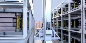智能模庫系統 針對模具特性,我司專門開發的模具立體庫,具有承載負荷大,穩定可靠;通過倉儲貨架和后臺控制系統操作,不僅節省存儲空間,而且在倉儲物資調撥過程中全方位實時管理,更加便捷高效。